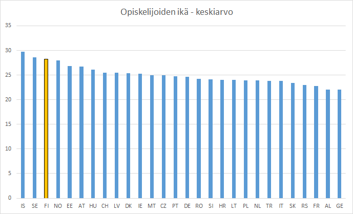 Kuva 2. Korkeakouluopiskelijoiden iän keskiarvo.