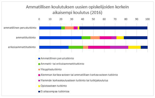 Kuvio 1: Ammatillisen koulutuksen uusien opiskelijoiden korkein aikaisempi koulutus vuonna 2016